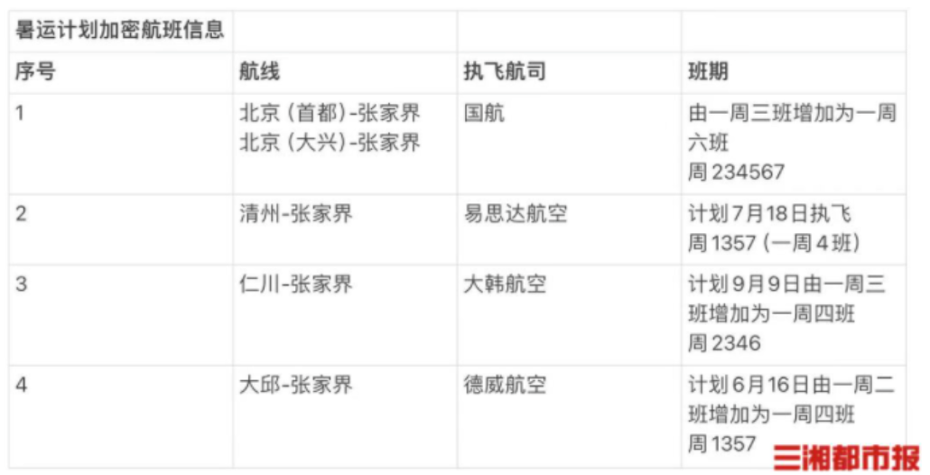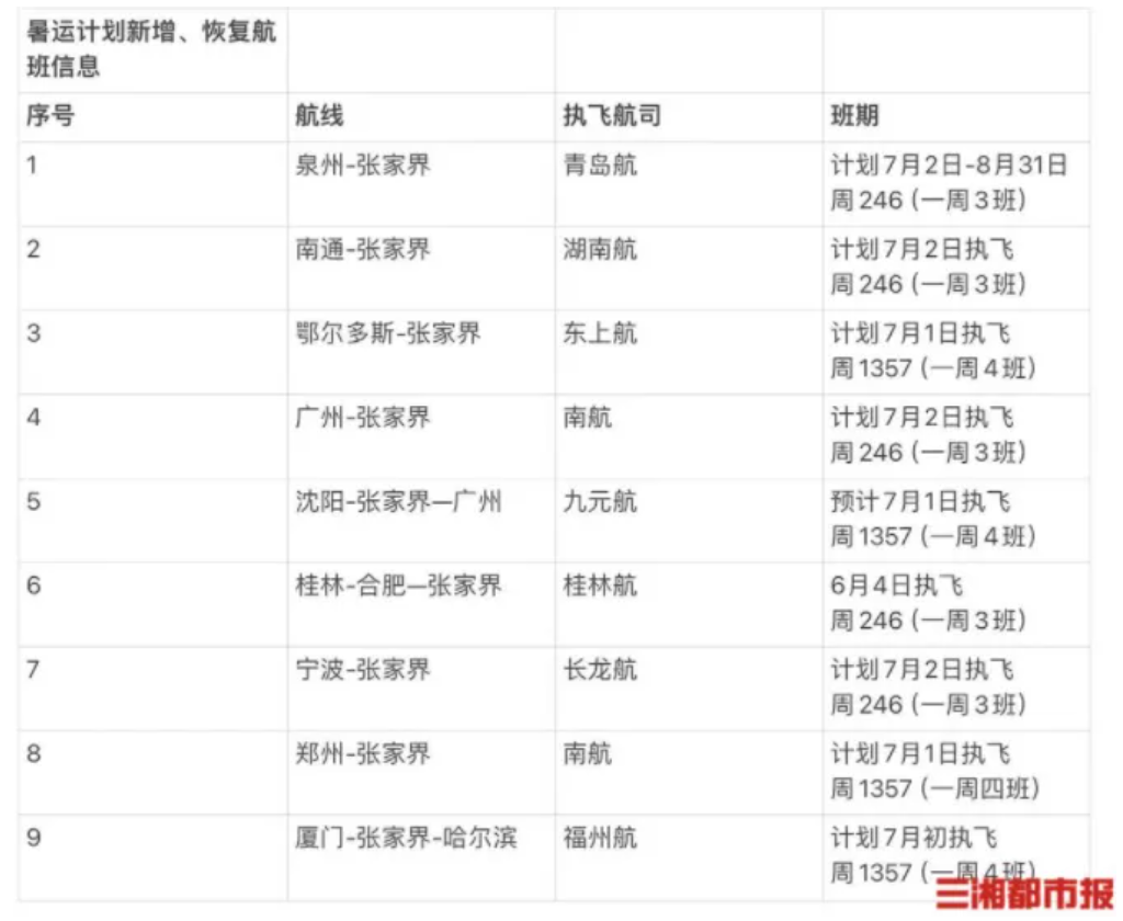 據悉,張家界機場執行夏航季航班計劃以來,累計運營航線38條,其中國內航線27條,國際及地區航線11條;通航城市42個,其中國內31個,國際及地區11個。