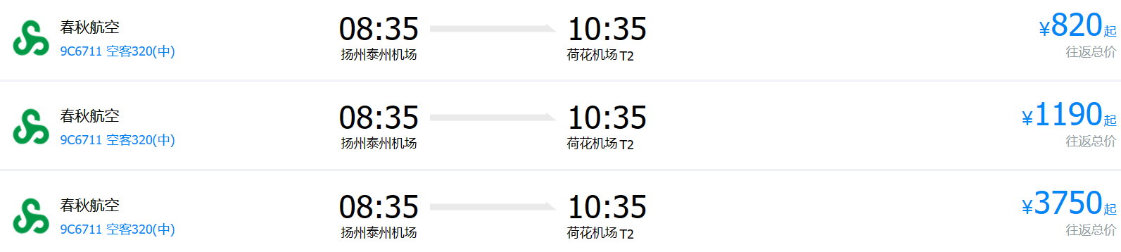 揚州泰州機場有直達張家界荷花機場的航班,具體航班參考: