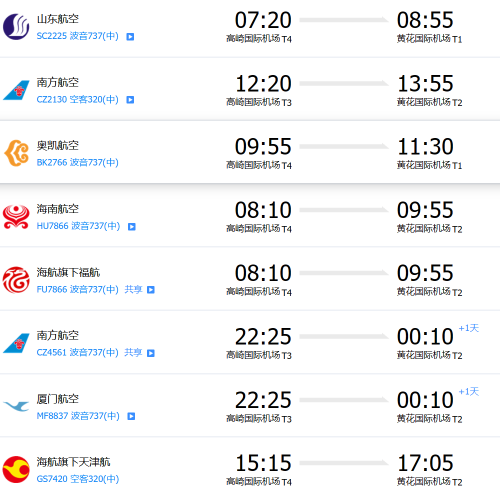 廈門高崎國際機場有直飛湖南長沙黃花機場的航班,具體參考如下: